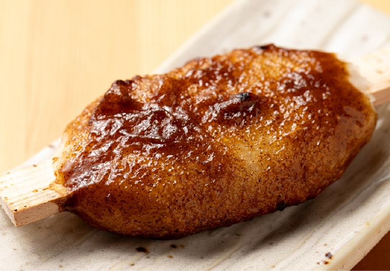 串につぶしたお米を巻きつけ、形を整えてタレをつけて香ばしく焼き上げた郷土料理です。