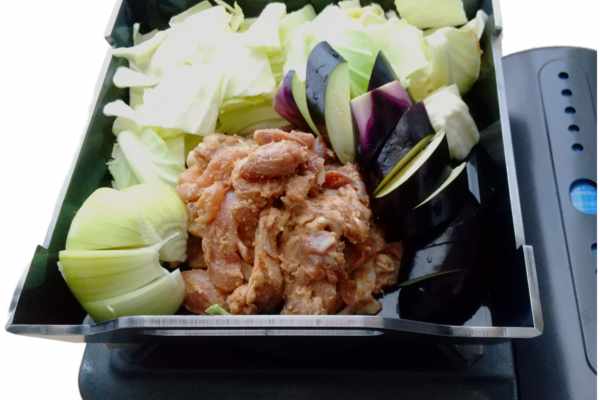 3.蓋を開けて肉と野菜を混ぜます。