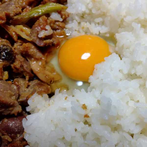 ごはんと生卵、お好みで醤油か追いタレを入れて混ぜ炒めると…